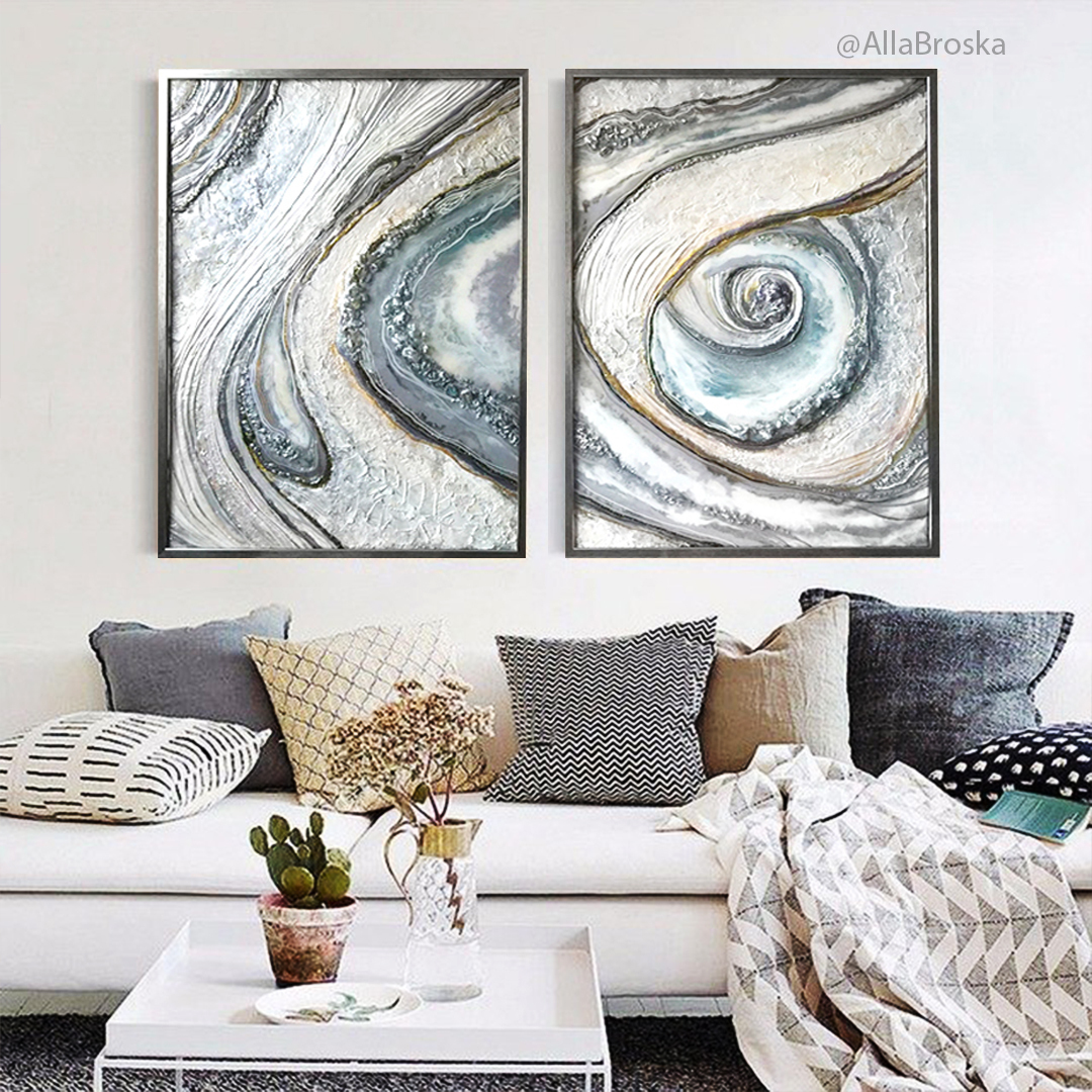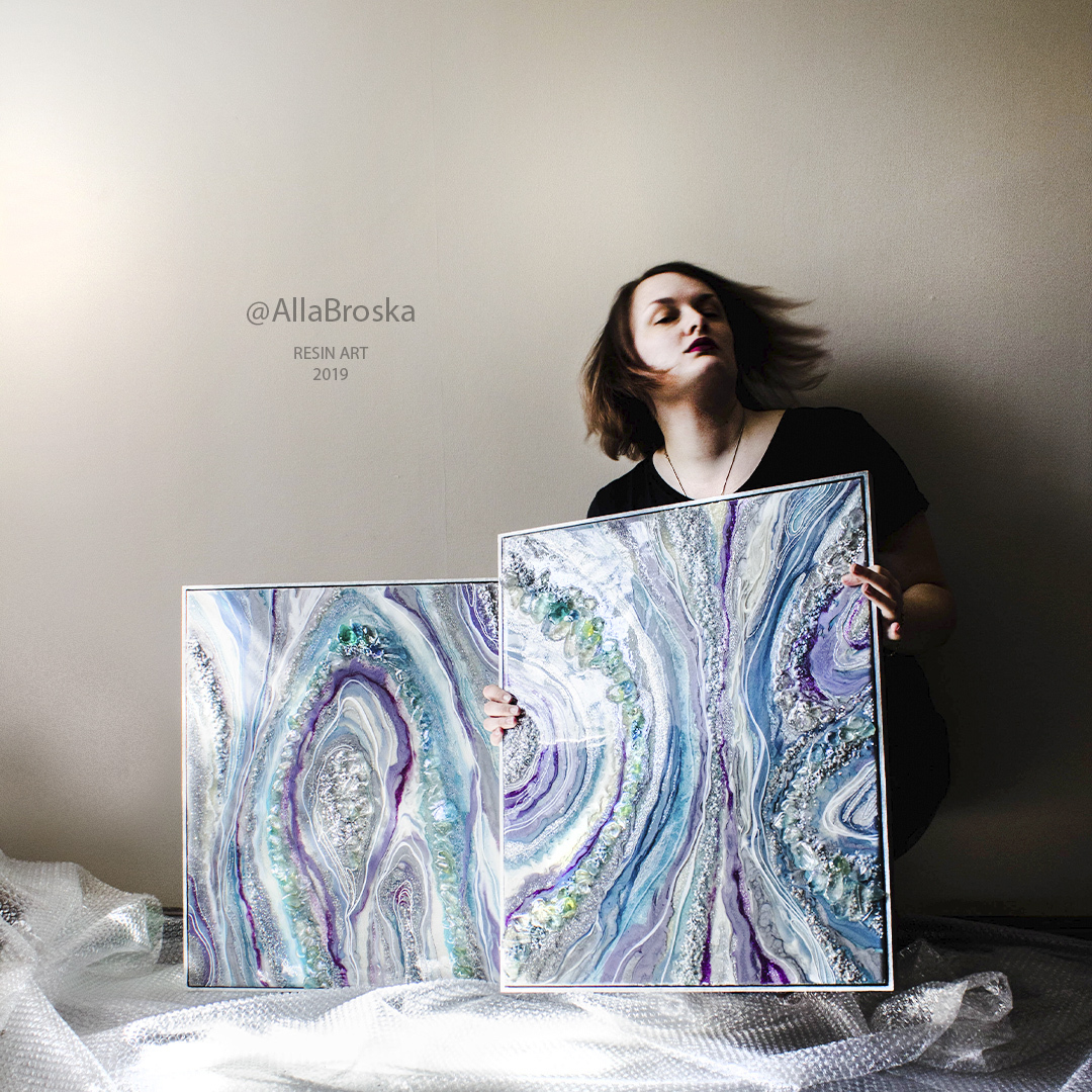 Картины акрилом и смолой отличаются немного рисунком и свойствами красок, но в основном конечно фактурой поверхности и вариантами техник.