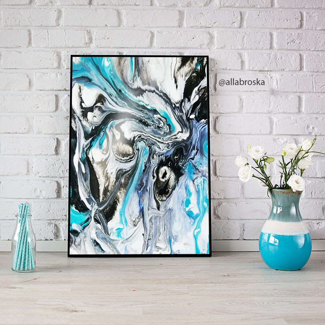 Тут реки краски и эффектов при высыхании могут быть матовыми или немного глянцевыми (но не стеклянными как в смоле). Можно добавлять текстуру и золочение. Картины акрилом можно рисовать в других техниках, например мазками или мастехином, получив не только абстрактые картины, но конкретные сюжены (цветы, пейзаж...)